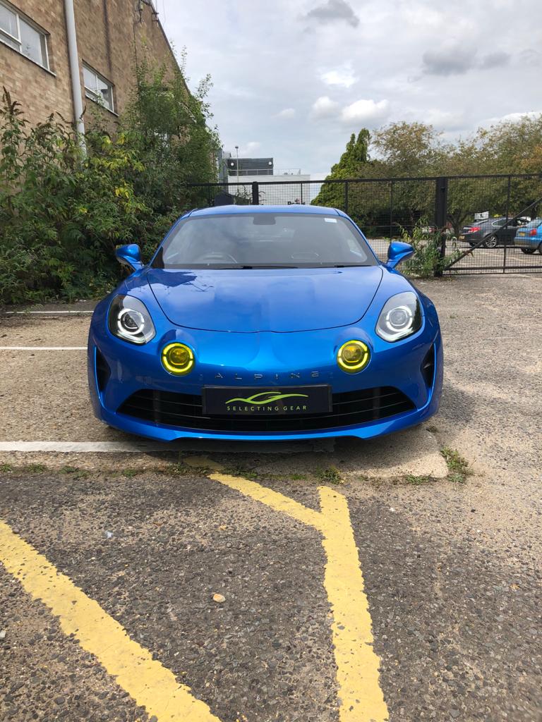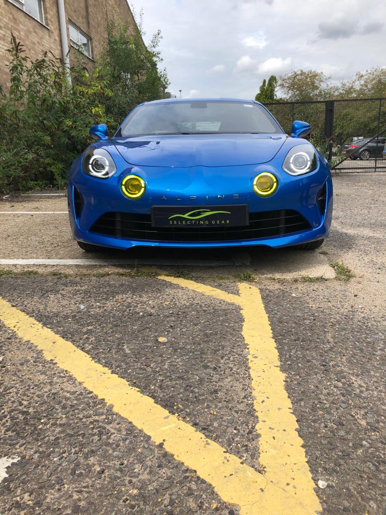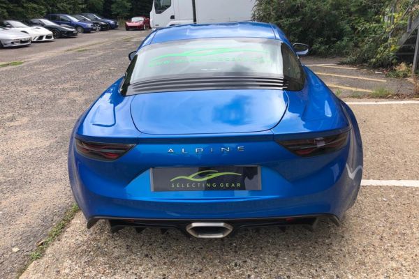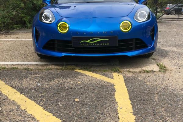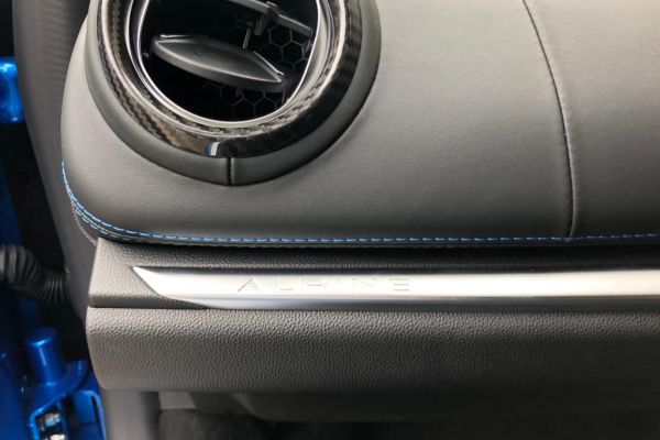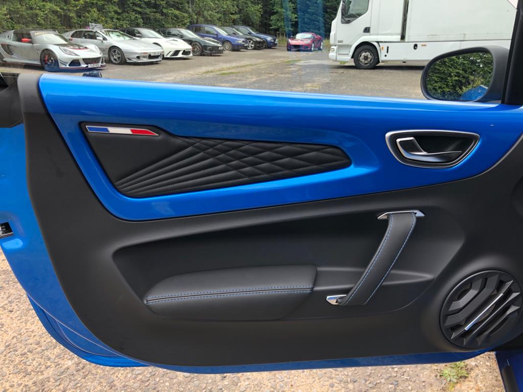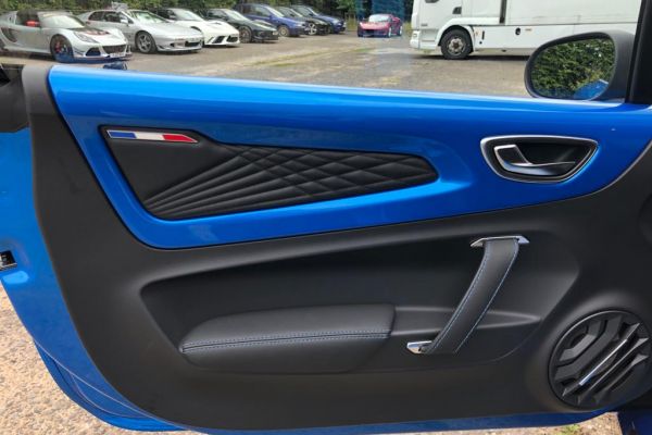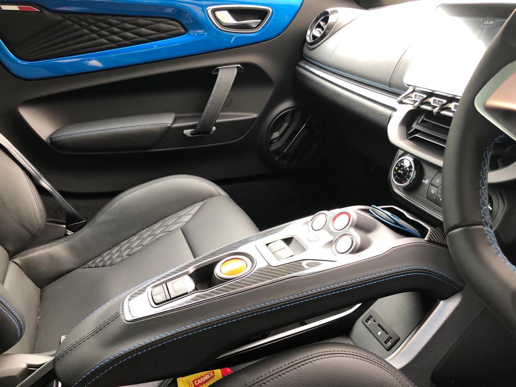 This particular car is highly specced and include the following: Special metallic Alpine blue paint, leather 6way black Sabelt seats, Mirror pack A110, Yellow cover spotlights, Alpine blue brake callipers, Blue Alpine logo to steering wheel, gloss black carbon fibre interior trim, Alpine logo on front wing, active sports exhaust, Alpine telemetrics.