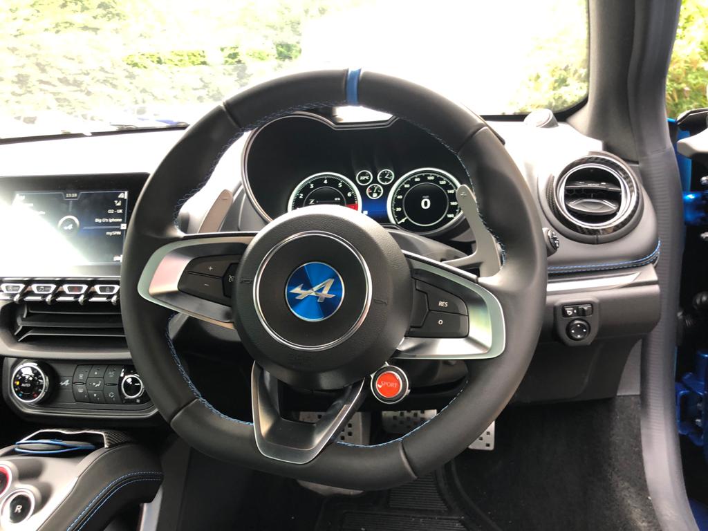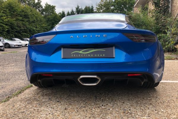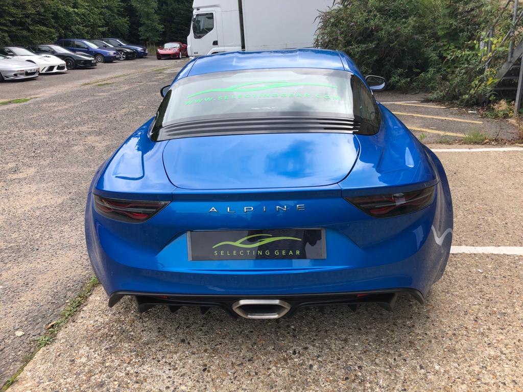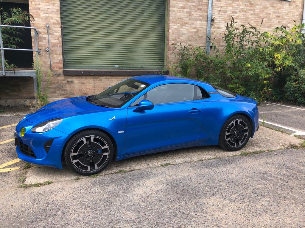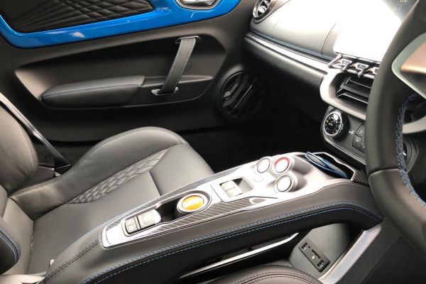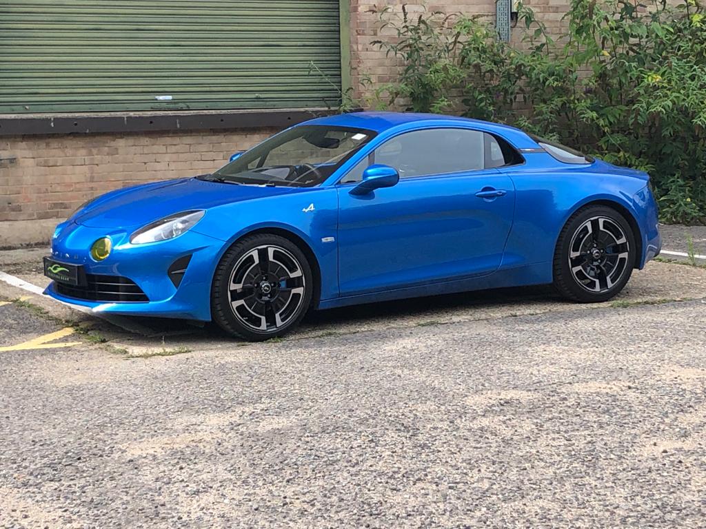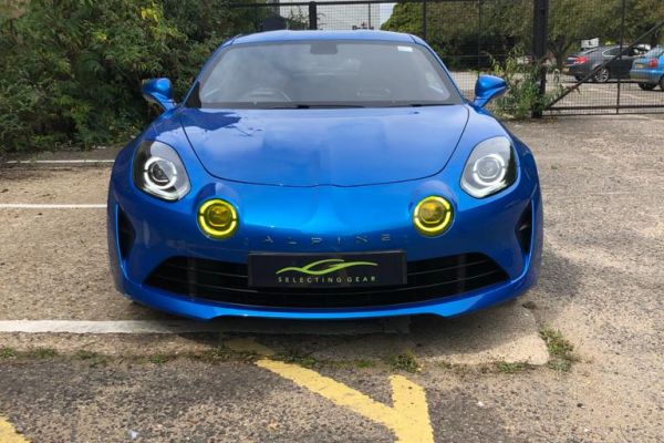 This particular car is highly specced and include the following: Special metallic Alpine blue paint, leather 6way black Sabelt seats, Mirror pack A110, Yellow cover spotlights, Alpine blue brake callipers, Blue Alpine logo to steering wheel, gloss black carbon fibre interior trim, Alpine logo on front wing, active sports exhaust, Alpine telemetrics.