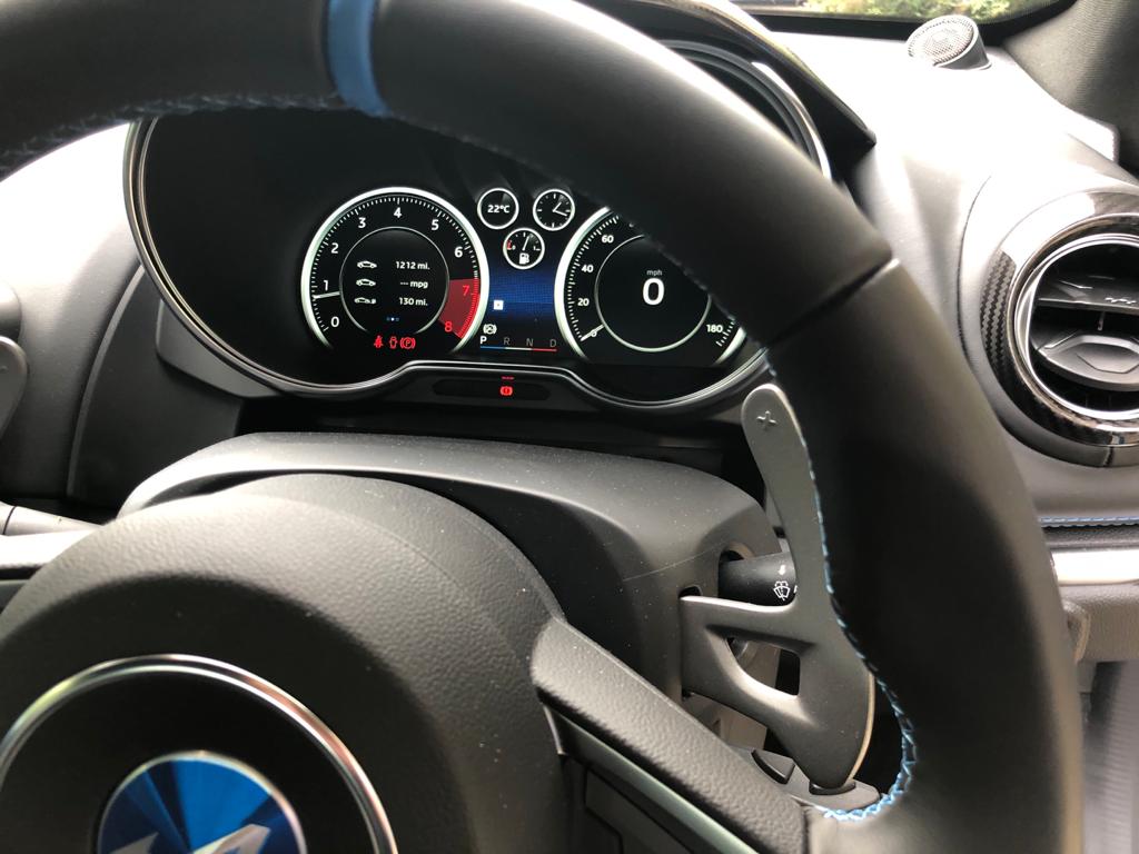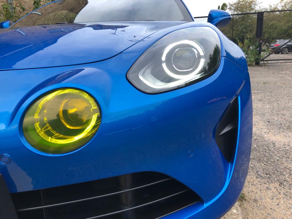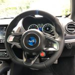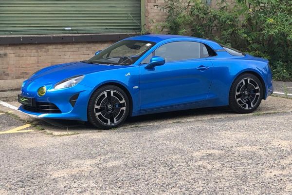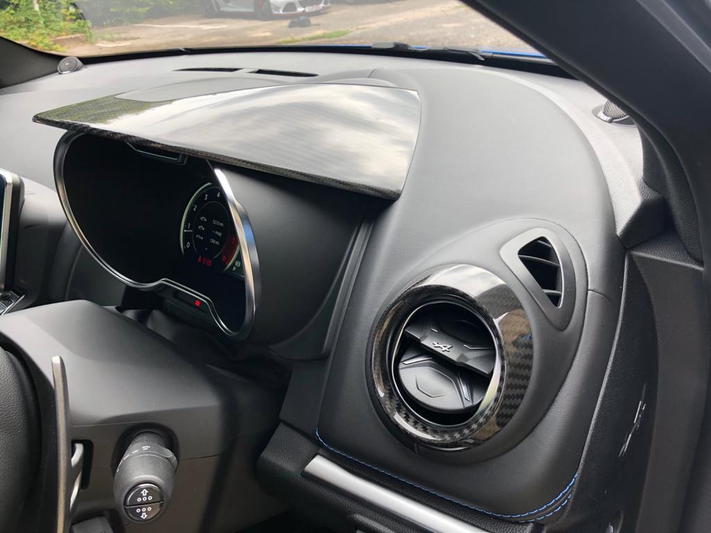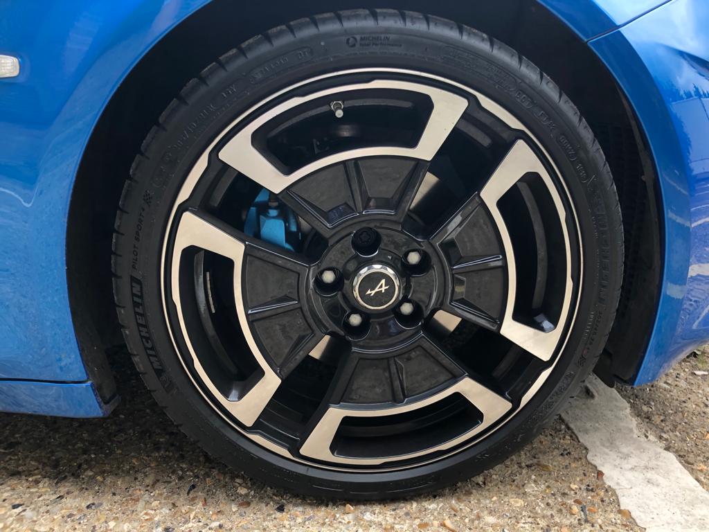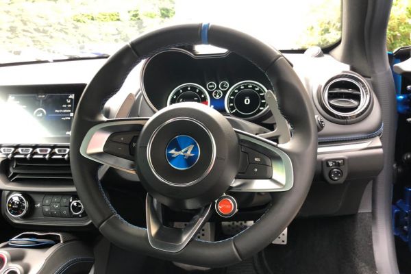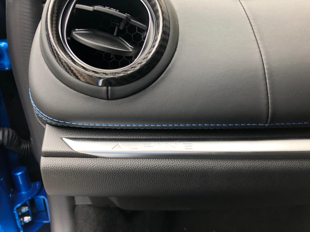 This particular car is highly specced and include the following: Special metallic Alpine blue paint, leather 6way black Sabelt seats, Mirror pack A110, Yellow cover spotlights, Alpine blue brake callipers, Blue Alpine logo to steering wheel, gloss black carbon fibre interior trim, Alpine logo on front wing, active sports exhaust, Alpine telemetrics.