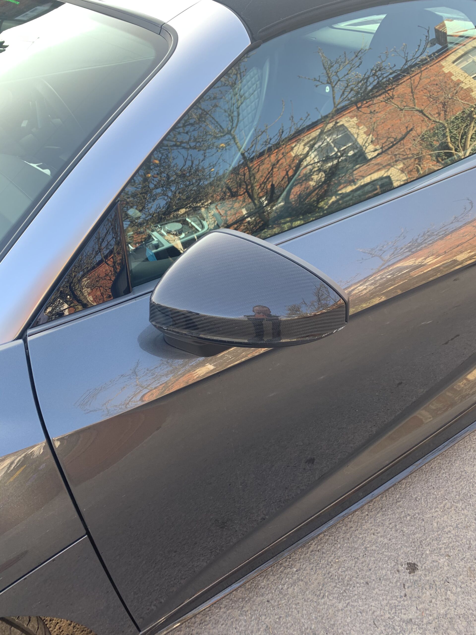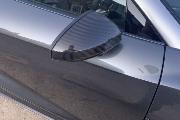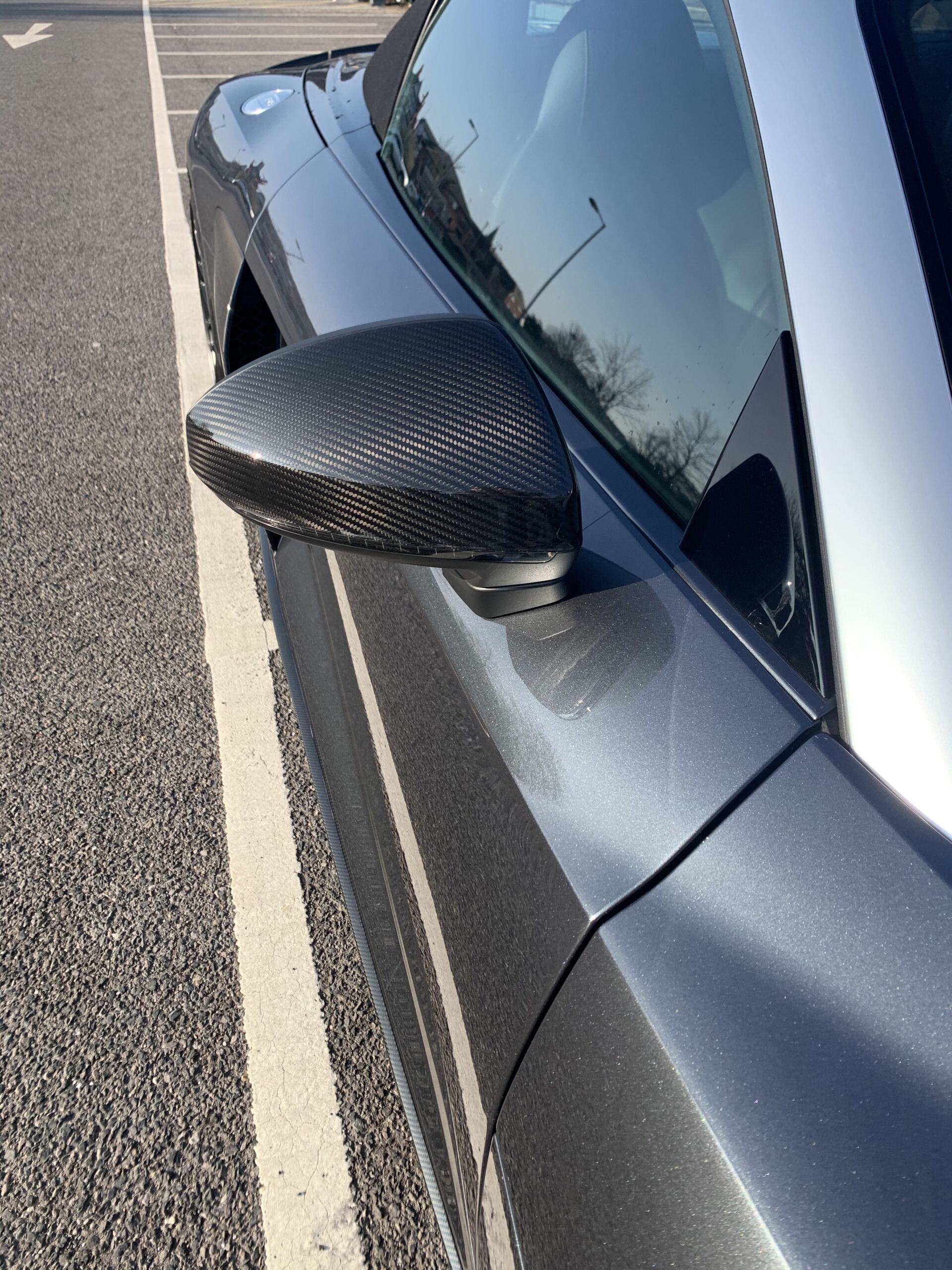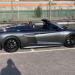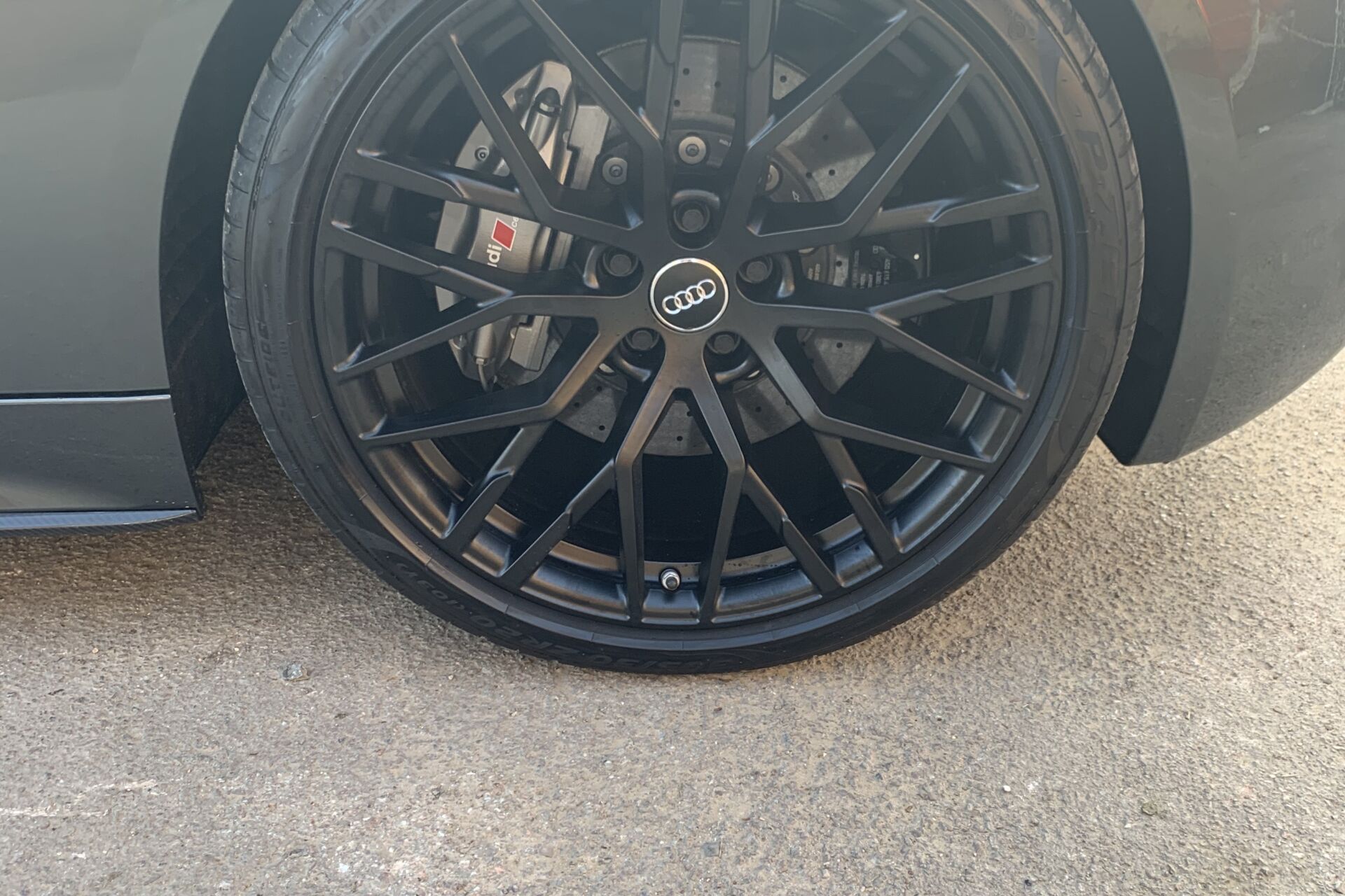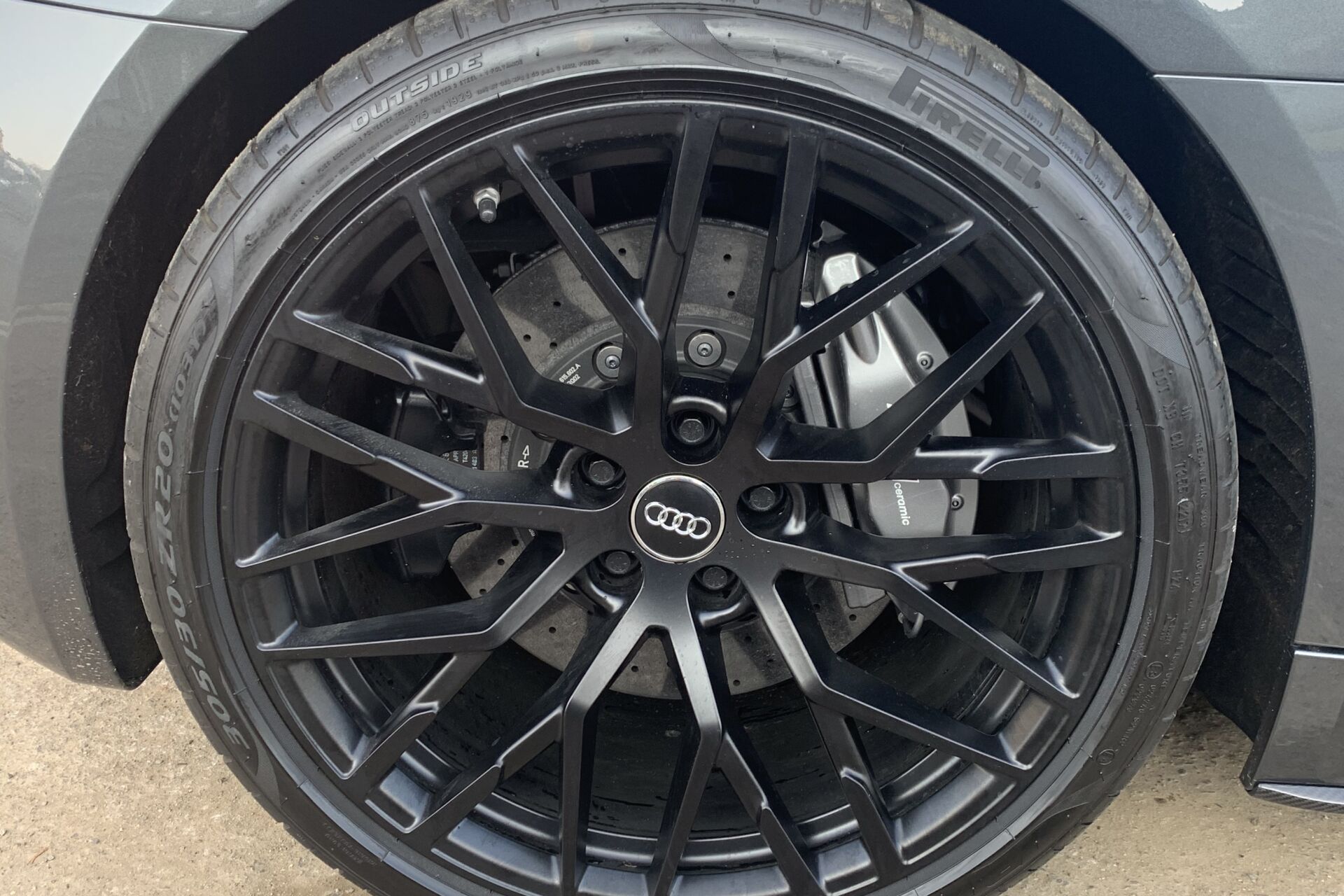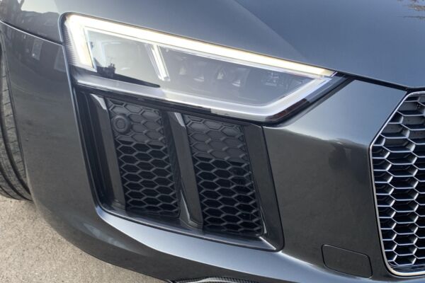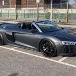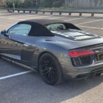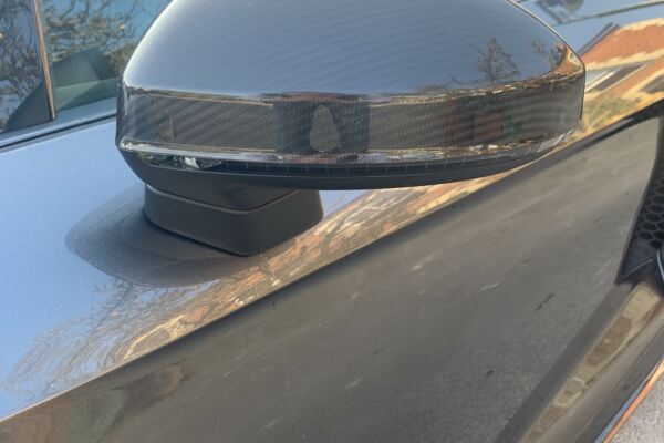The Audi R8 V10 Plus Spyder takes everything we love about the coupe but brings you closer to the sound of that glorious V10. With a fully electric retractable soft top roof the Spyder quickly transforms itself in around 20 seconds revealing a large vent adorned rear deck, hiding the monstrous engine beneath. This particular car is swathed in carbon fibre which offsets the beautiful Daytona Grey paintwork, and there is a full PPF wrap on the car which will the paint looking fabulous. The Spyder also benefits from a retractable glass rear window, which when the hood is down acts as a brilliant wind deflector keeping buffeting in the cabin to a minimum allowing the Bang and Olufsen sound system to add to the visceral experience.