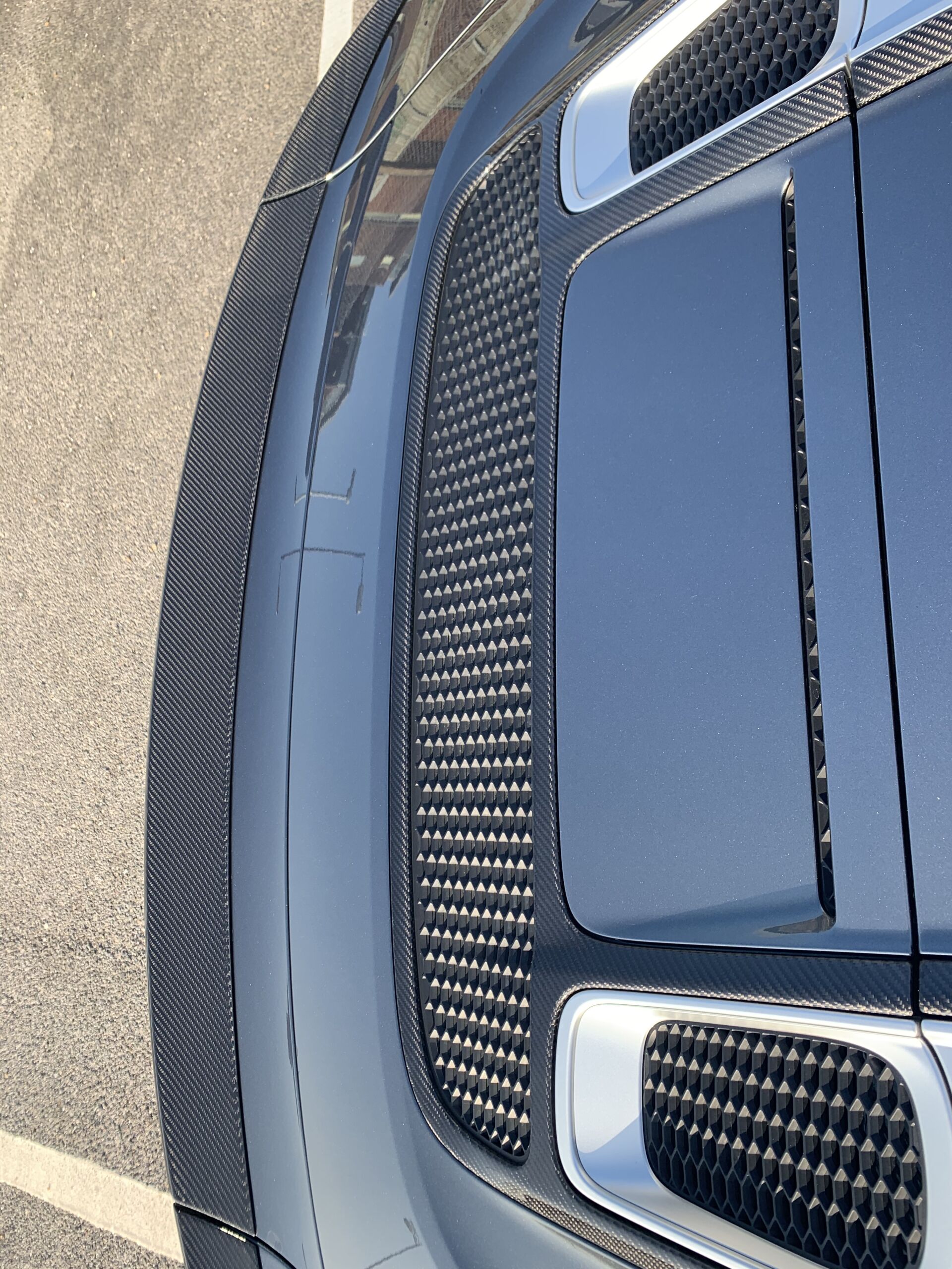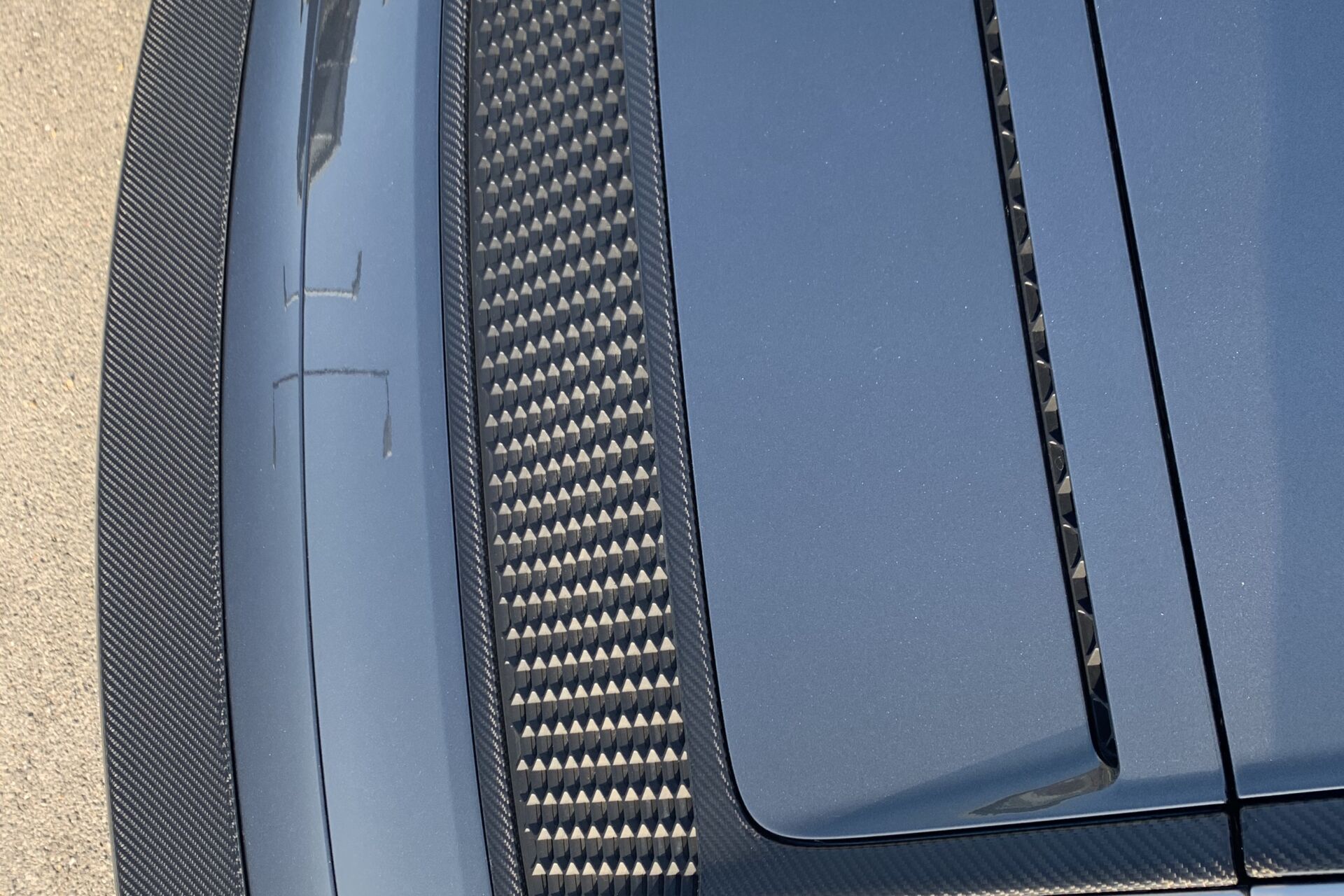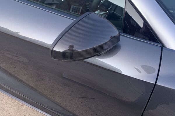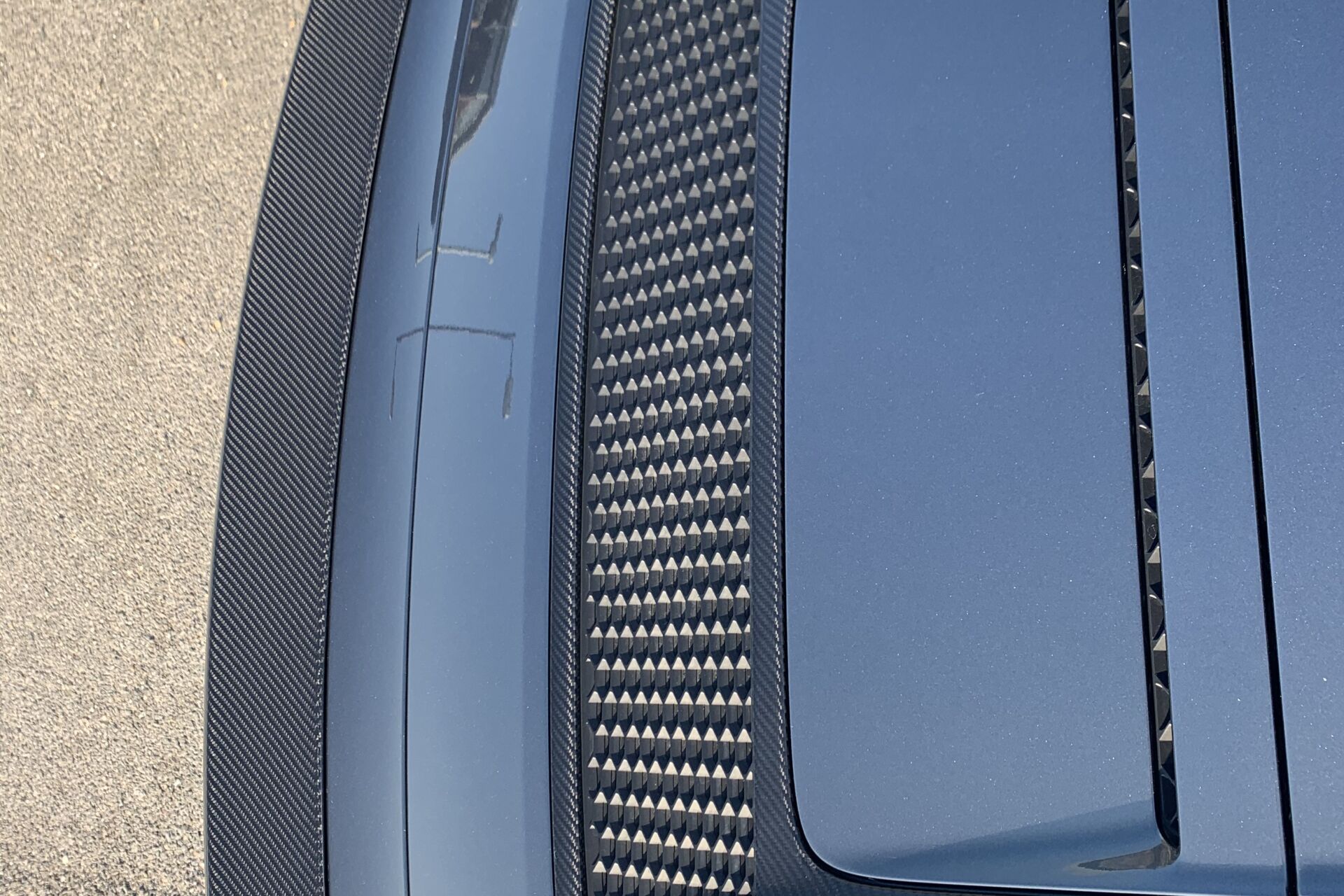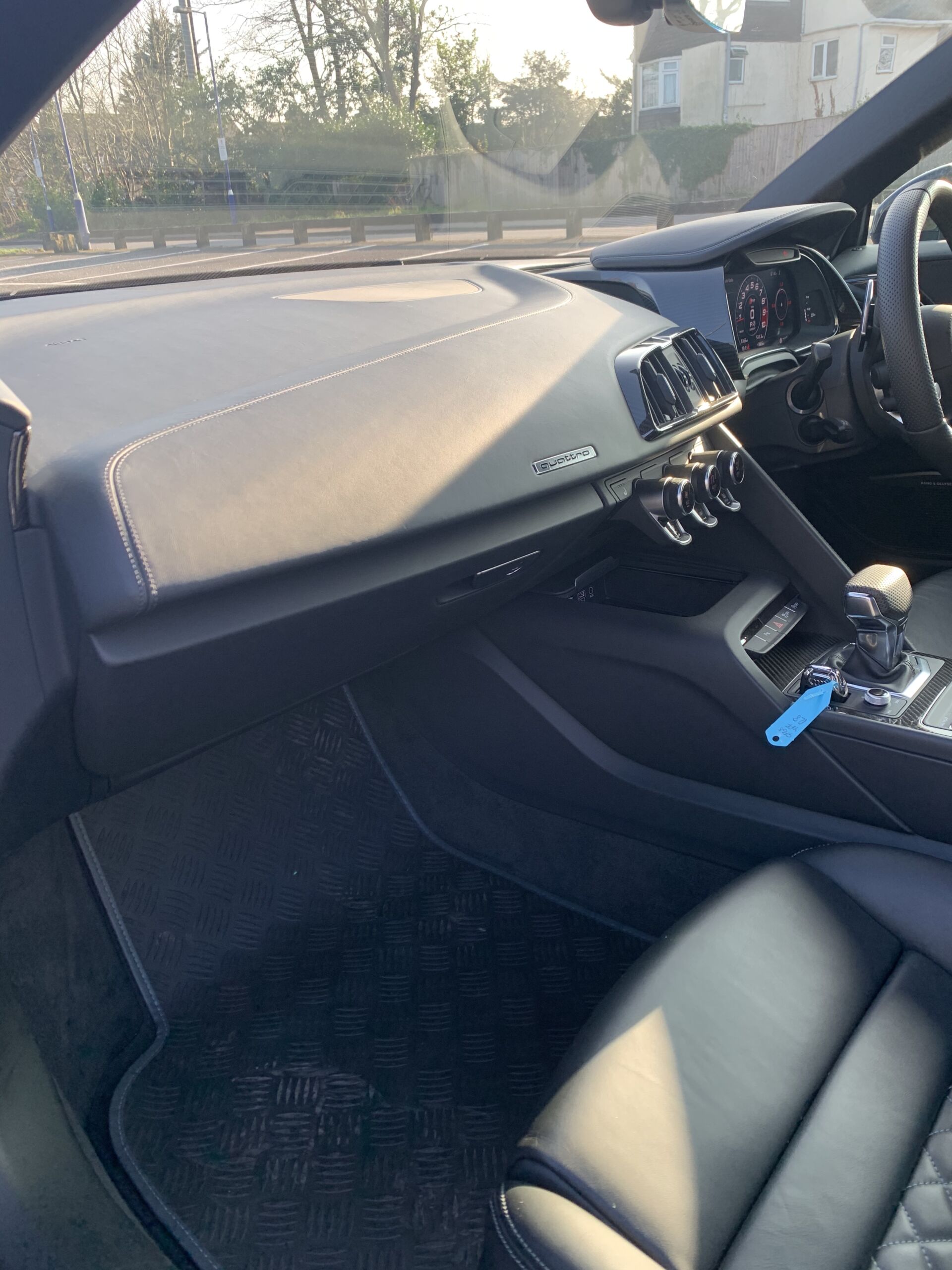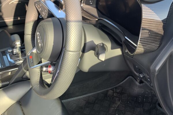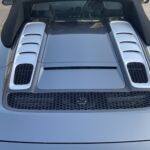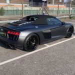 The Audi R8 V10 Plus Spyder takes everything we love about the coupe but brings you closer to the sound of that glorious V10. With a fully electric retractable soft top roof the Spyder quickly transforms itself in around 20 seconds revealing a large vent adorned rear deck, hiding the monstrous engine beneath. This particular car is swathed in carbon fibre which offsets the beautiful Daytona Grey paintwork, and there is a full PPF wrap on the car which will the paint looking fabulous. The Spyder also benefits from a retractable glass rear window, which when the hood is down acts as a brilliant wind deflector keeping buffeting in the cabin to a minimum allowing the Bang and Olufsen sound system to add to the visceral experience.