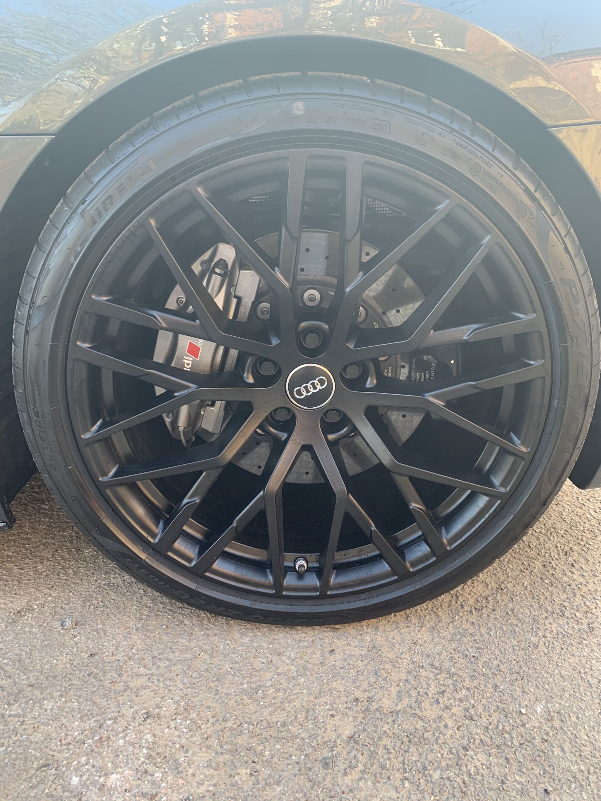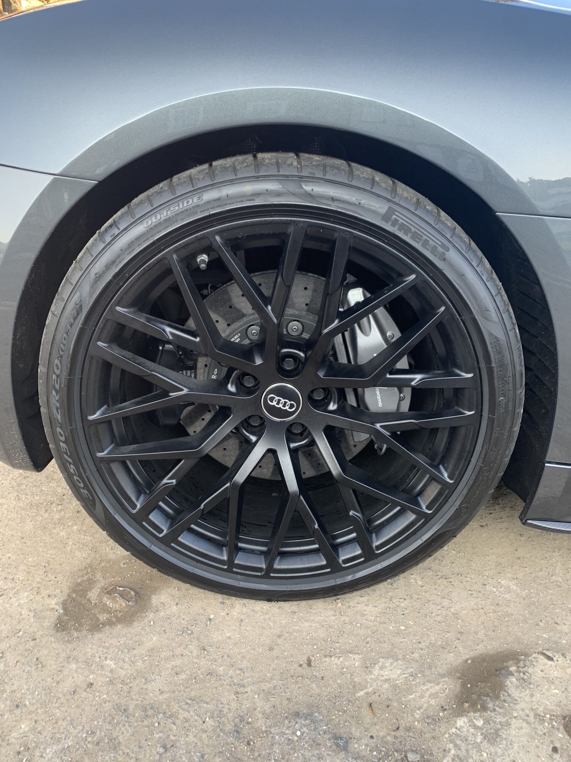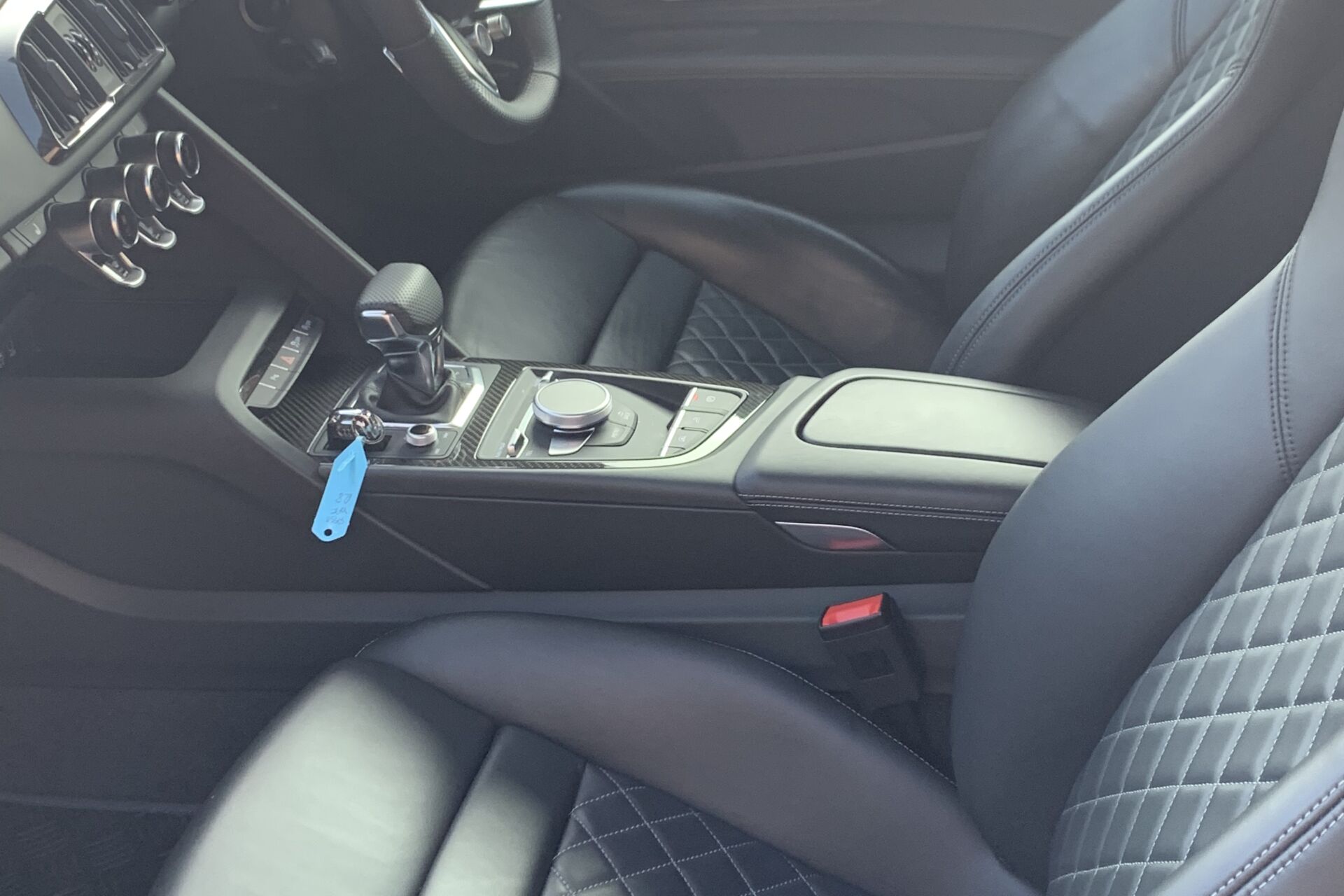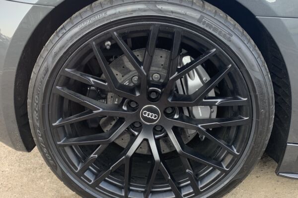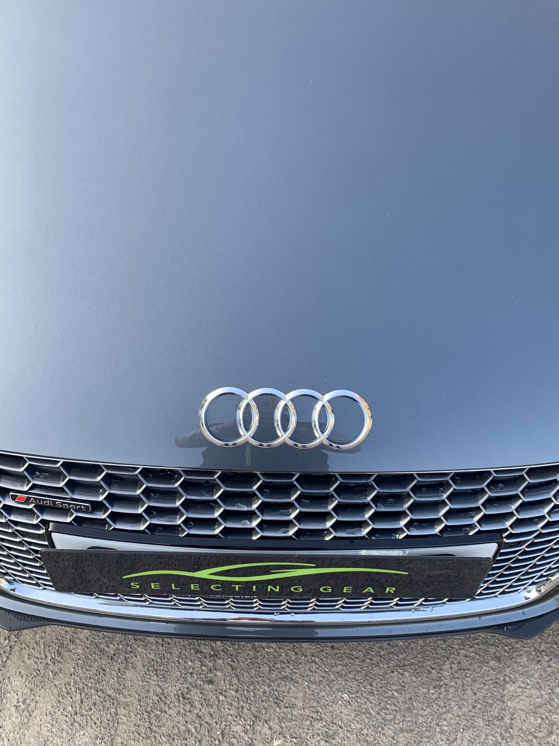 The List of optional extras on this car is as follows: 20’’ 10 spoke Y Alloys, Audi Magnetic Ride suspension, Audi Quilted Sports seats in Fine Nappa Leather, contrast stitch, with Lumbar memory, Full Leather Package, Bang & Olufsen Sound System, Smart Phone interface, Audi Phone box, Cruise Control, Reversing Camera, Dynamic Steering, Sports Exhaust, iIluminated Door Sills, Daytona Grey Pearl paint, and full PPF wrap.