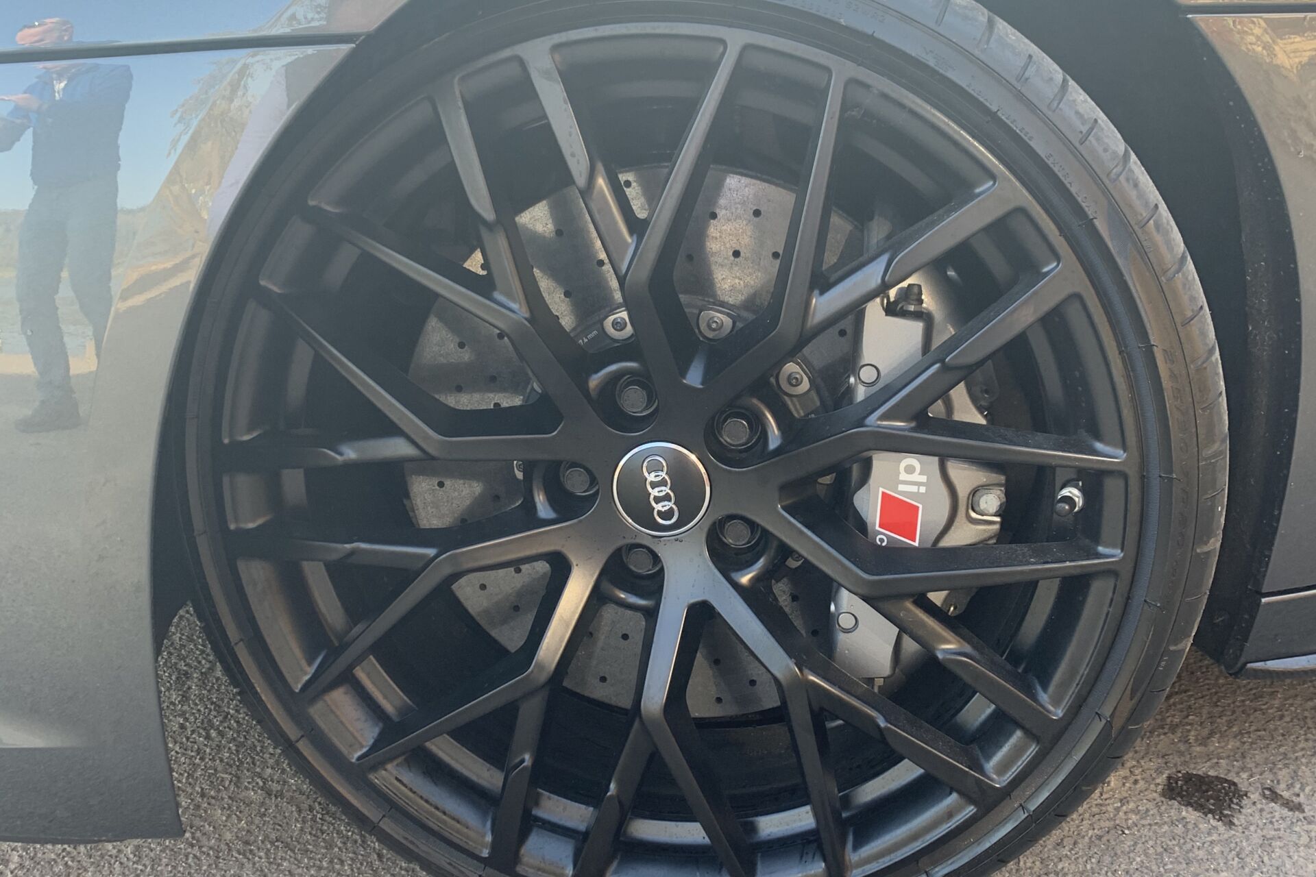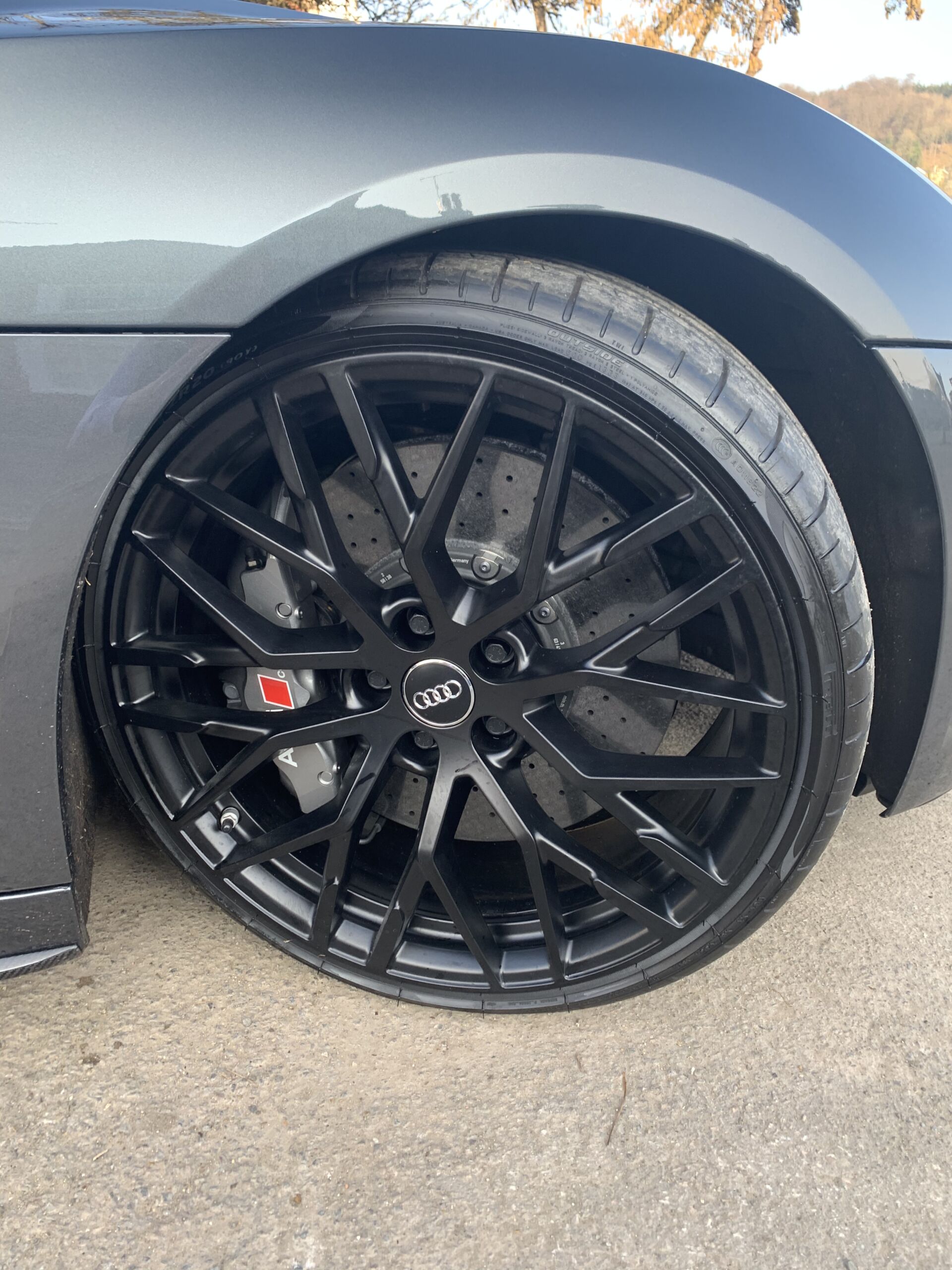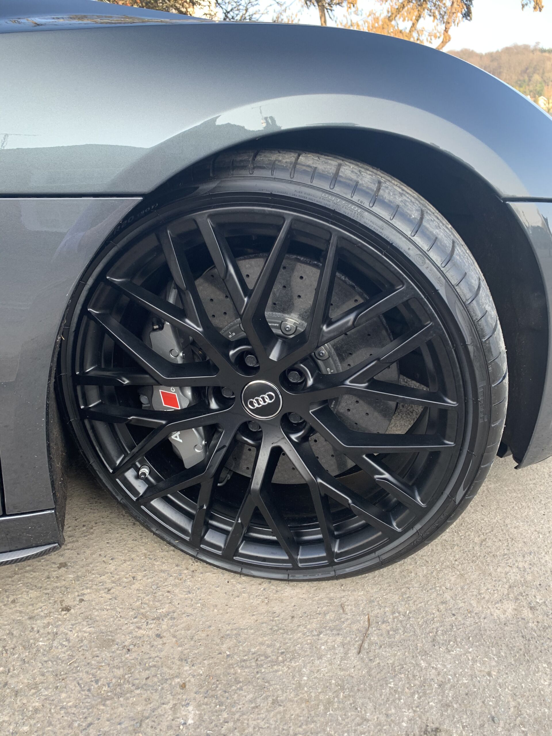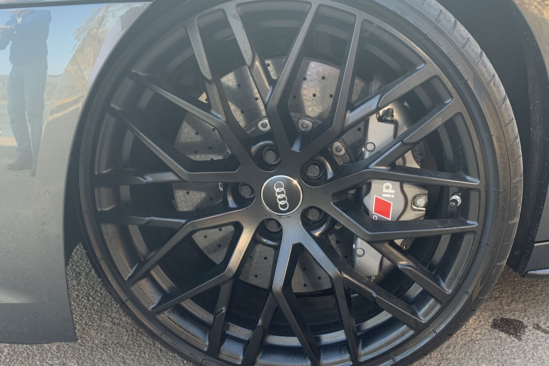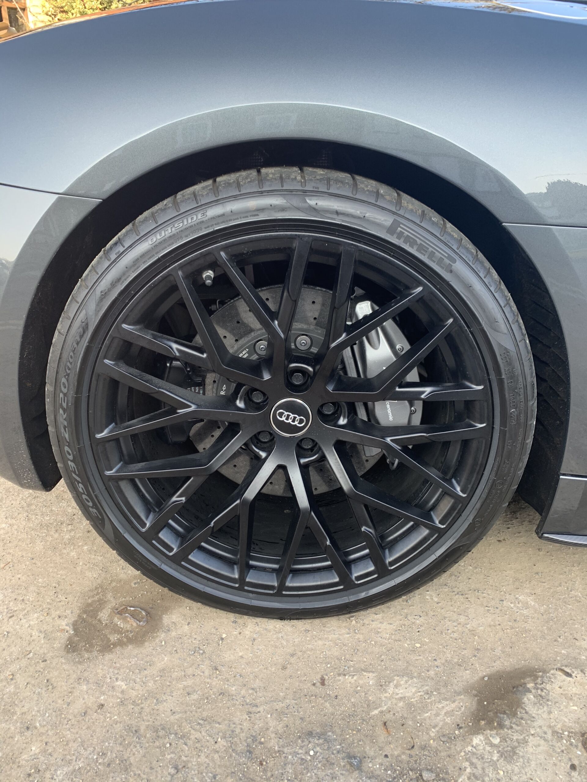 The List of optional extras on this car is as follows: 20’’ 10 spoke Y Alloys, Audi Magnetic Ride suspension, Audi Quilted Sports seats in Fine Nappa Leather, contrast stitch, with Lumbar memory, Full Leather Package, Bang & Olufsen Sound System, Smart Phone interface, Audi Phone box, Cruise Control, Reversing Camera, Dynamic Steering, Sports Exhaust, iIluminated Door Sills, Daytona Grey Pearl paint, and full PPF wrap.