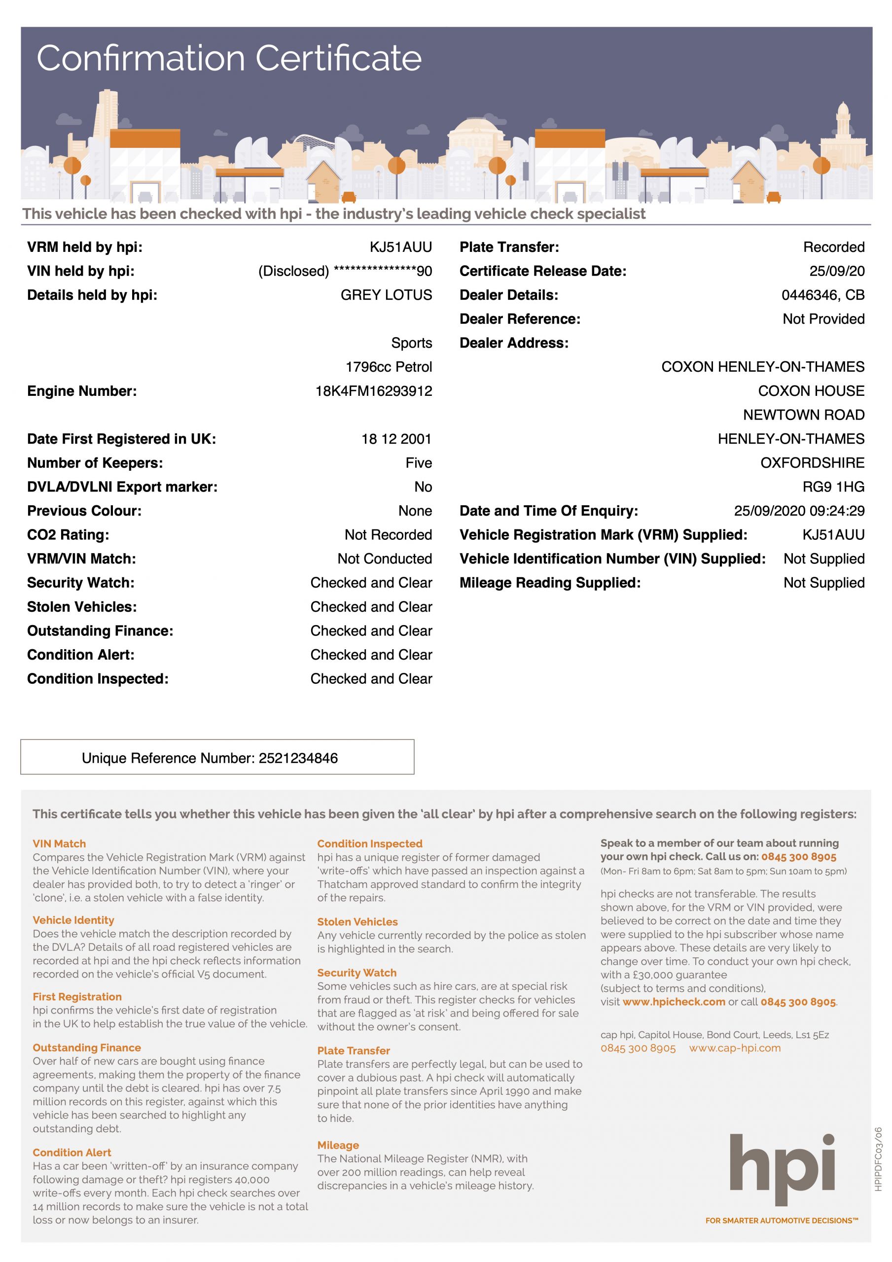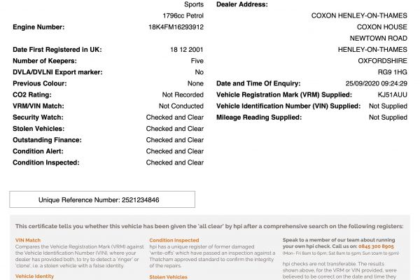 All listed cars are HPI checked with certificates available for viewing. The HPI check for this car is showing as clear for finance, damage or stolen recovered. Click here to view.
